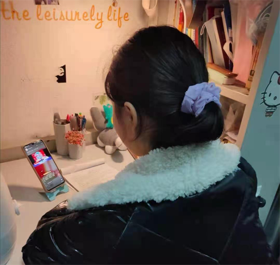(图为:williamhill英国官网青年学生自觉通过手机学习党的十九届五中全会精神云团课。)