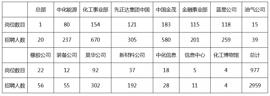 2022年中国中化将提供977个岗位,招聘共计2959人。