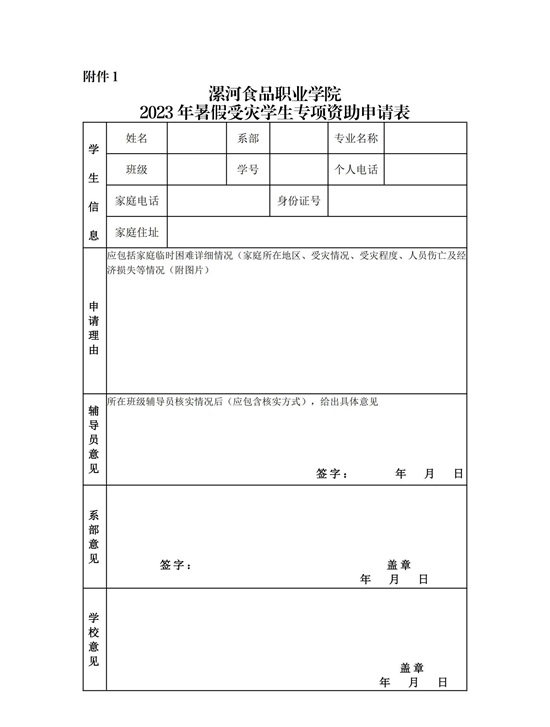 2023/08/07漯河食品职业学院关于开展2023年暑假受灾学生资助工作的通知