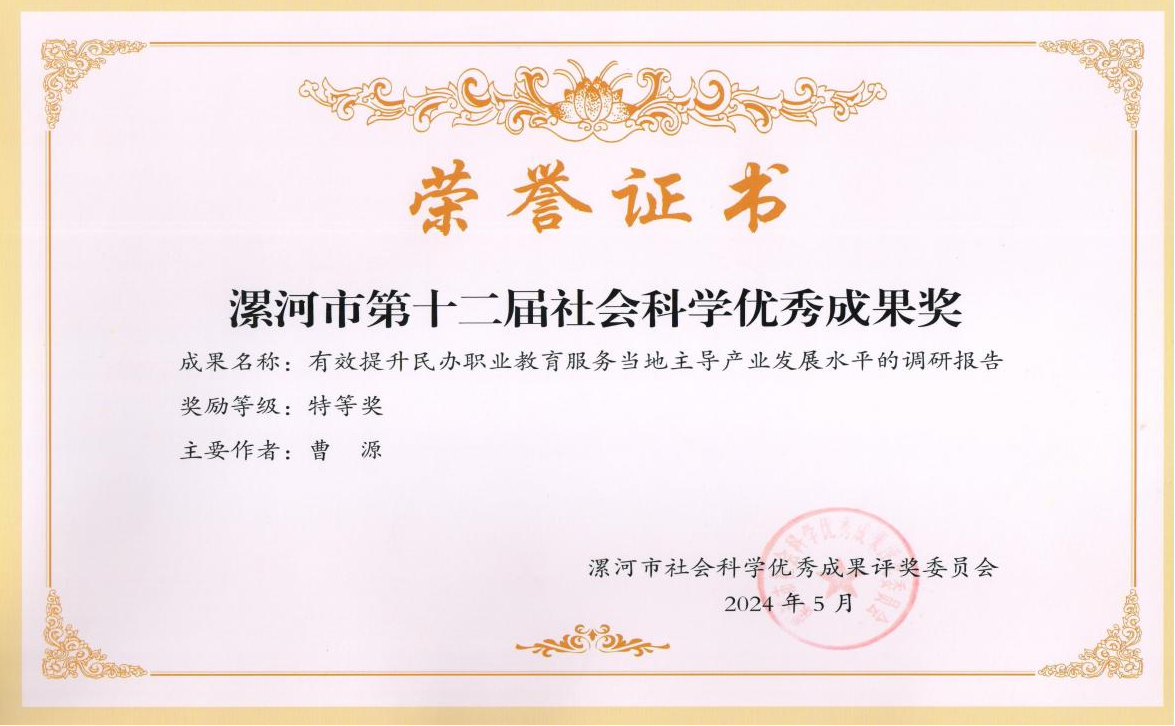 2024/05/28喜报!我系在漯河市2023年度哲学社会科学规划调研课题评审中荣获调研成果特等奖2项