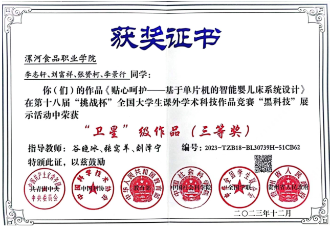 2024/04/17喜讯:我系师生在第十八届“挑战杯”全国大学生课外学术科技作品竞赛“黑科技”专项赛中取得优异成绩