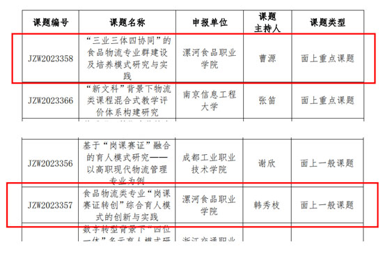 2023/05/22喜讯:我系获全国高校、职业院校物流教改教研课题立项2项