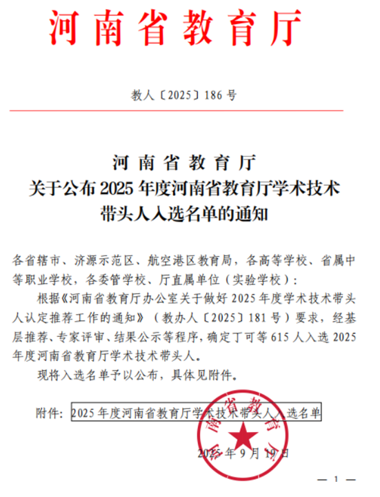 2025/09/23经济管理学院曹源同志入选2025年度河南省教育厅学术技术带头人