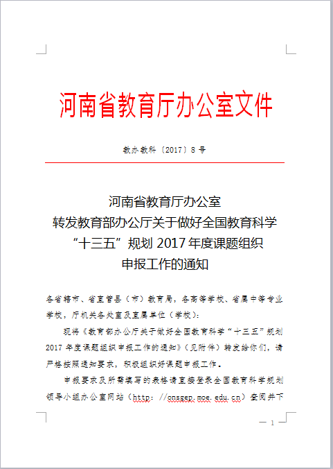 河南省教育厅办公室转发教育部办公厅关于做好全国教育科学“十三五”规划2017年度课题组织申报工作的通知