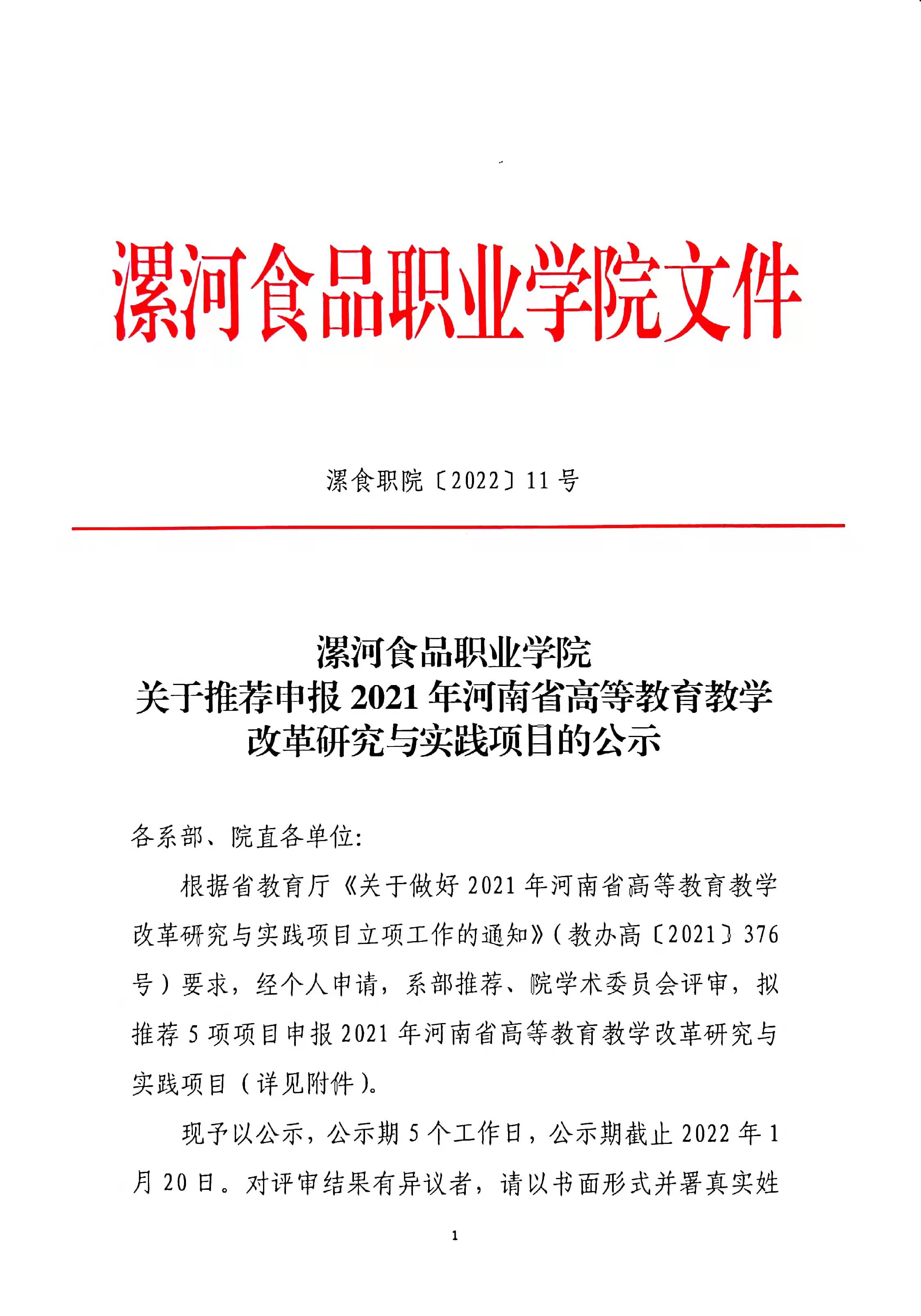 关于推荐申报2021年河南省高等教育教学改革研究于实践项目的公示