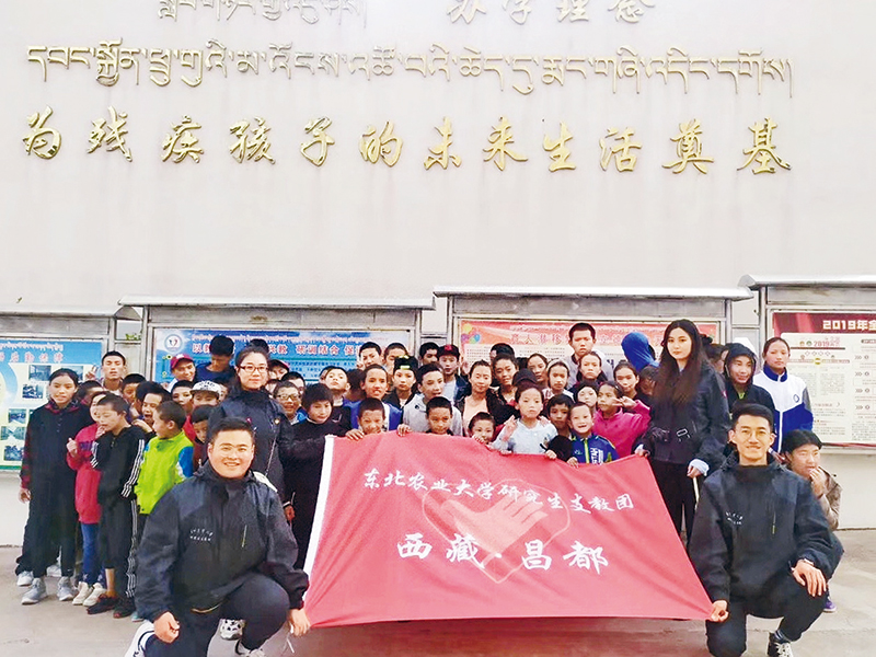 习近平总书记强调,同人民一道拼搏、同祖国一道前进,服务人民、奉献祖国,是当代中国青年的正确方向。他勉励青年人到基层和人民中去建功立业,让青春之花绽放在祖国最需要的地方,在实现中国梦的伟大实践中书写别样精彩的人生。图为2020年8月10日,东北农业大学支教团在西藏昌都市支教期间与学校师生合影。 新华社记者 杨思琪/摄