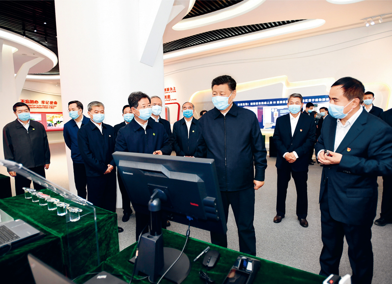 2020年5月11日至12日,中共中央总书记、国家主席、中央军委主席习近平在山西考察。这是5月12日上午,习近平在山西转型综合改革示范区政务服务中心,了解示范区改革创新发展情况。 新华社记者 谢环驰/摄