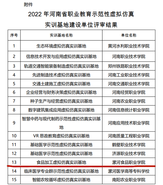 2023/05/25食品加工虚拟仿真实训基地,被认定为“河南省职业教育示范性虚拟仿真实训基地”