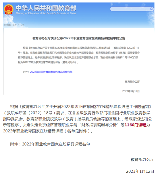 2023/02/25《肉制品加工技术》课程被遴选为2022年职业教育国家在线精品课程