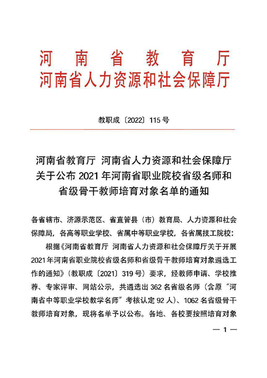 2022/04/21我系多名教师被遴选为省级名师和省级骨干教师培育对象