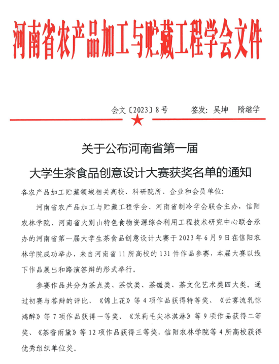 2023/06/17食品工程系在河南省第一届大学生茶食品创意设计大赛喜获佳绩