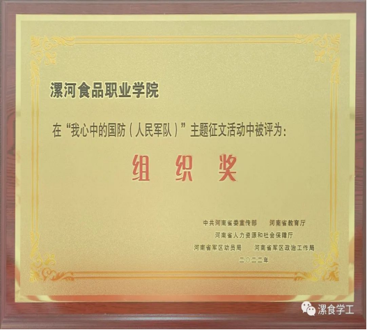 喜报!我院在“我心中的国防(人民军队)主题征文活动中”被评为组织奖。喜报!食品工程系琚晨阳在2022年“我心中的国防(人民军队)”主题征文中荣获优秀奖...