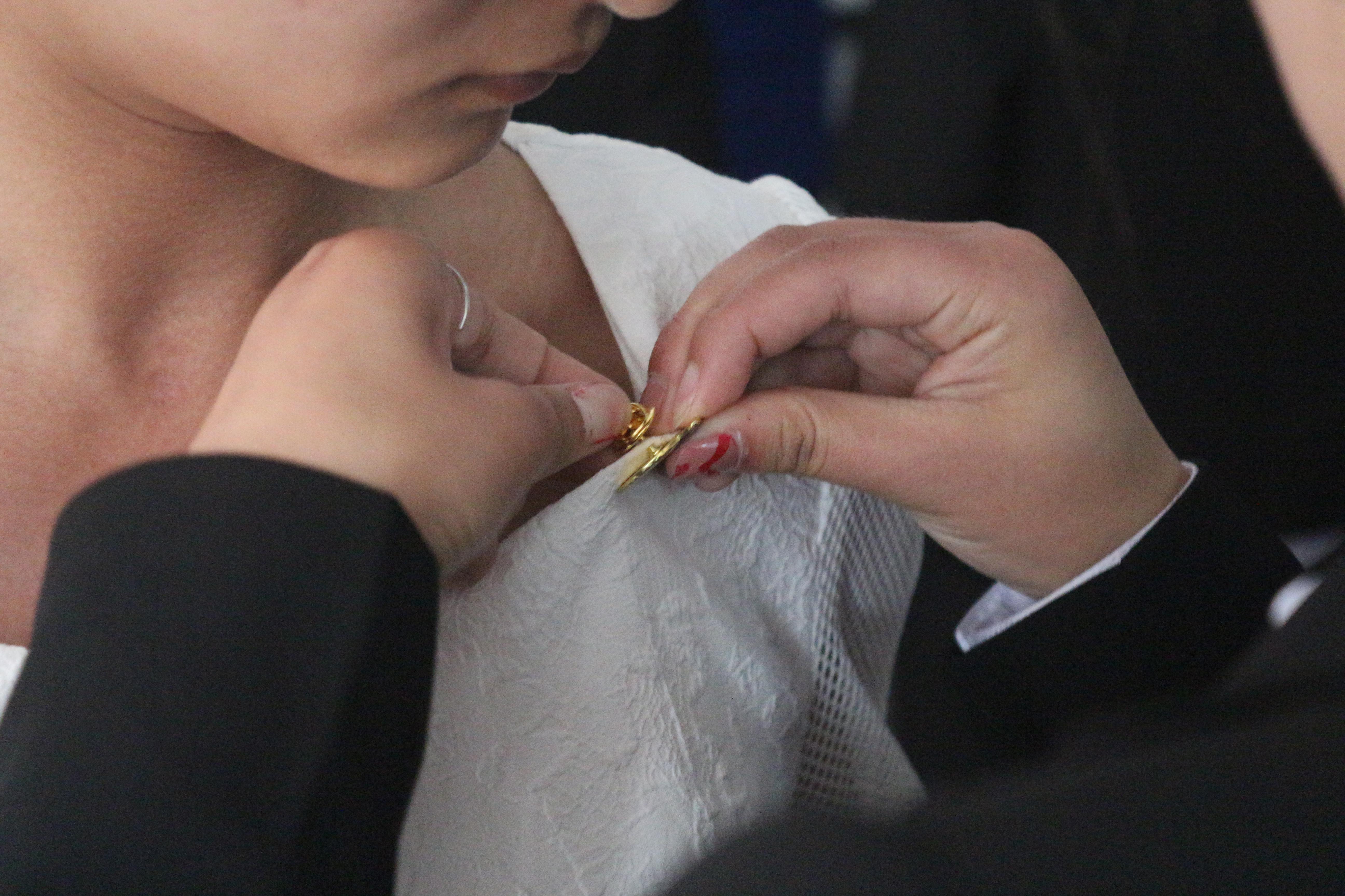 大会在庄严的国歌声中拉开帷幕。由老团员代表为新入团员代表们佩戴团徽,并祝贺他们加入共青团,能够更好的发扬这个新时代青年们的风貌精神和青春风采。