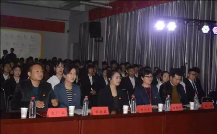青春践行十九大,不忘初心跟党走。为进一步学习贯彻党的十九大精神和习近平新时代中国特色社会主义思想,把十九大的大道理讲成青年爱听的“家常话”,学生爱看的“演出剧”,使青年学生听得懂、能领会、可落实,让十九大精神浸润高校学子心。2018年3月30日下午,“漯河市青联红色文艺轻骑兵‘十九大精神进校园’”在我院大学生创业中心二楼路演厅进行了主题演出,共青团漯河市委副书记刘雯雯,我院党委副书记、副院长张爱琴,共青团漯河市委志愿者服务主任刘承韶,我院院团委书记文广磊,漯河市青联文化艺术体育界主任邓波出席了此次演出活动。我院团学干部观看了此次主题演出。