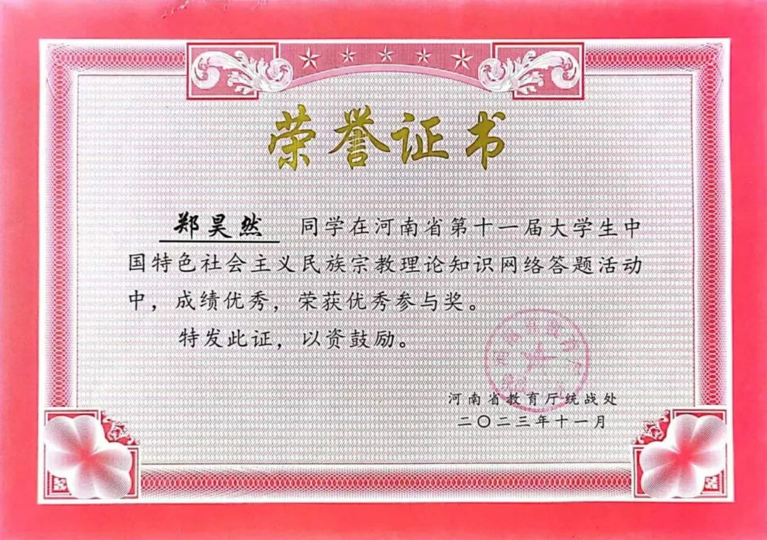 近日,由中共河南省委教育工委、省教育厅主办的河南省第十一届大学生中国特色社会主义民族宗教理论知识网络答题活动结果公布,williamhill英国官网汽车工程系郑昊然同学、食品检测系齐淼同...