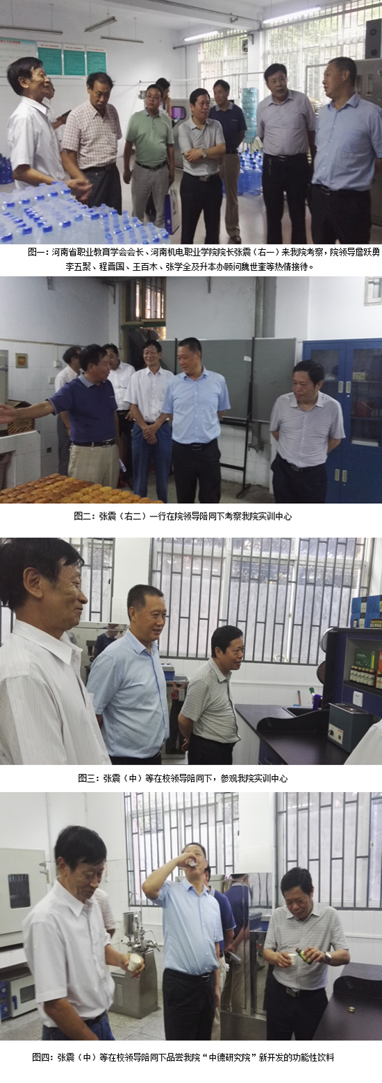 张震一行实地考察了我院食品加工、食品质量检测、工厂式实训。
