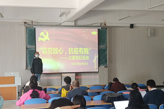 当前疫情防控进入关键期,为进一步突出党建引领,强化责任担当,充分发挥党员先锋模范作用。5月14日上午,我系党支部在E102组织开展“请党放心 抗疫有我”主题党日活动。活动由党支部书记刘新刚主持,信息工程系全体党员参加。