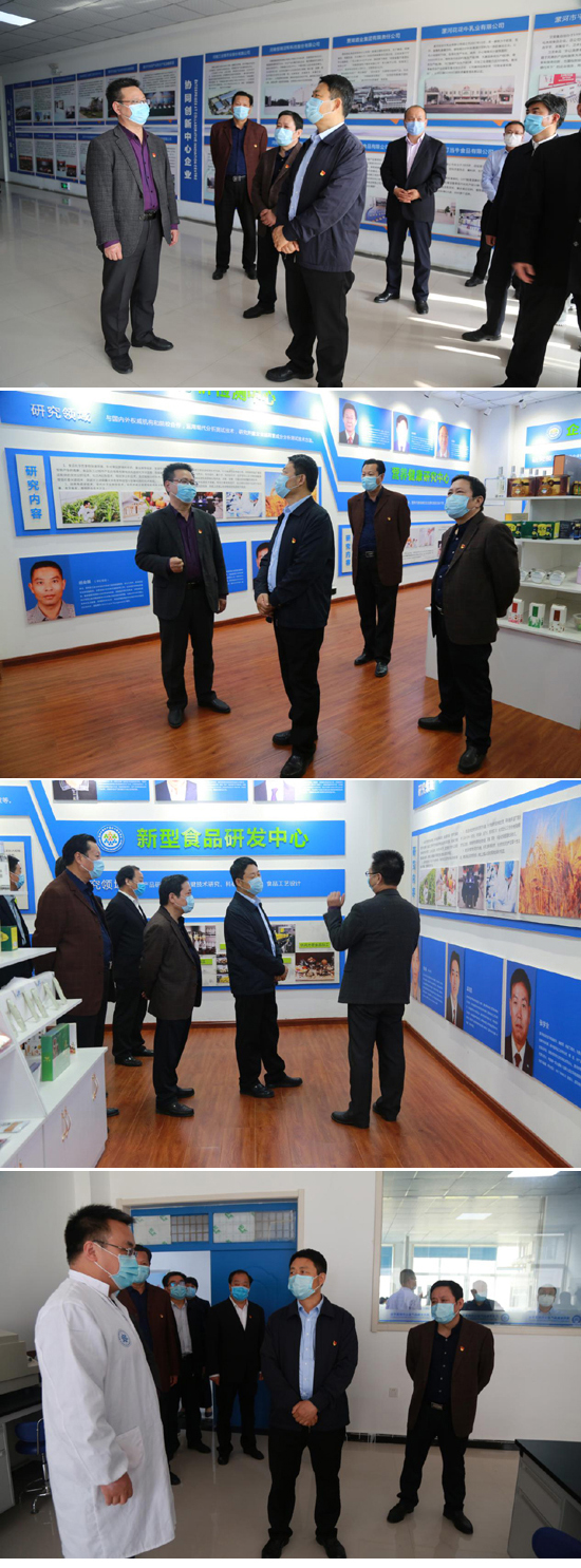 在我院漯河市食品产业公共研发平台,贾宏宇一行首先了解了研发平台建设背景、功能定位、入驻研发团队及研发机构等建设运营情况,随后深入到研发平台的生产车间、展示厅、研究室等进行了实地调研指导。在西北农林科技大学食品学院研究室,贾宏宇副书记详细询问了科研人员的工作及生活状况,代表漯河市委市政府对科研人员为漯河食品产业做出的贡献表示感谢,并鼓励科研人员努力工作、工作及生活中的困难要及时提出。最后,贾宏宇副书记强调:要深入贯彻习近平总书记关于“三链同构”的重要指示精神和中央、省、市各项部署,认真落实省长尹弘来漯调研讲话精神;漯河食品职业学院作为以食品专业为主的高等院校,为漯河市乃至河南省的食品产业培养了大批的技术型人才,有力的推动着漯河市的经济发展;漯河市食品产业公共研发平台在人才培养、科技创新、成果转化等诸多方面发挥了较大作用,一定要想方设法多引进科技人才及有实力的企业,使研发平台运行的越来越好。