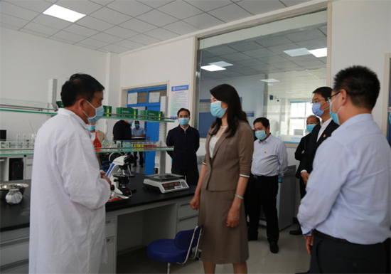 霍金花一行深入到学院的漯河市食品产业公共研发平台,在研发平台大厅,详细了解研发平台的建设背景、功能定位、入驻企业、服务项目等建设运营情况;在研发平台的功能饮料中试生产车间,仔细查看了生产的各个流程;在中国农科院研究室(农产品加工研究室)及西北农林科技大学研究室(乳品研究室),细心了解研发人员的科研环境、科研项目、成果转化等,并与现场的研发人员和企业技术负责人进行了亲切交流;在研发平台的分析检测中心——漯河市中标检测服务有限公司,认真听取了工作人员对分析检测的项目、承检的业务、服务全省企业的情况、每年的收益等方面的介绍。霍金花还观看了学院的肉制品、乳制品、饮料、焙烤、发酵等食品中试生产线。