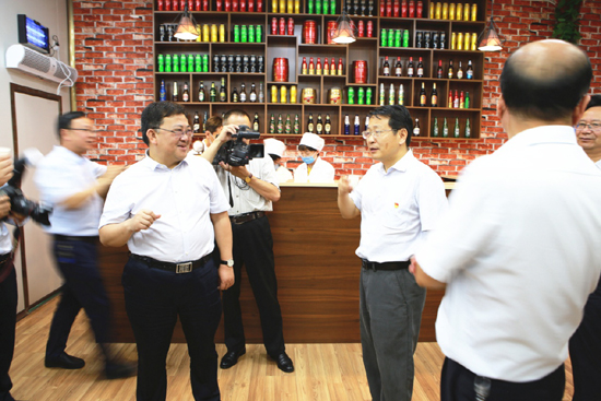 6月11日上午,漯河市委书记蒿慧杰、常务副市长高喜东、市委秘书长李建涛及漯河市编办、发改委、教育局、人社局、财政局相关领导一行到漯河食品职业学院调研指导工作,漯河食品职业学院董事长詹耀轩、院长李五聚、副院长高愿军、院长助理、实训中心主任樊振江陪同调研。