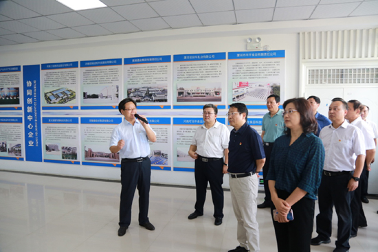 在我院漯河市食品产业公共研发平台,蒿慧杰书记一行首先了解了研发平台建设背景、功能定位、入驻研发团队及研发机构等建设运营情况,随后深入到研发平台的生产车间、展示厅、研究室等进行了实地调研指导。最后,蒿慧杰书记指出:漯河食品职业学院为漯河市乃至河南省的食品产业培养了大批的技术型人才,有力的推动着漯河市的经济发展;漯河市食品产业公共研发平台做为政府、高校、企业联合支撑的科研机构,一定要想方设法多引进科技人才及有实力的企业,使研发平台运行的越来越好。